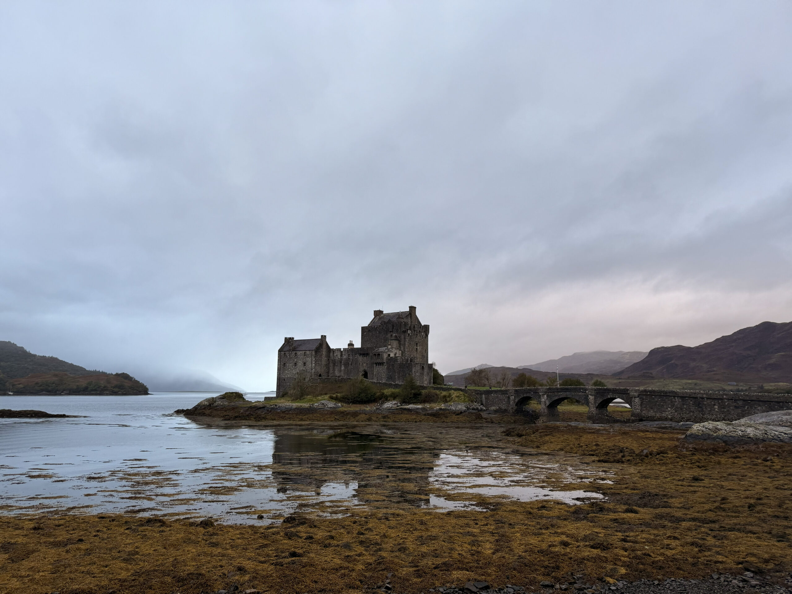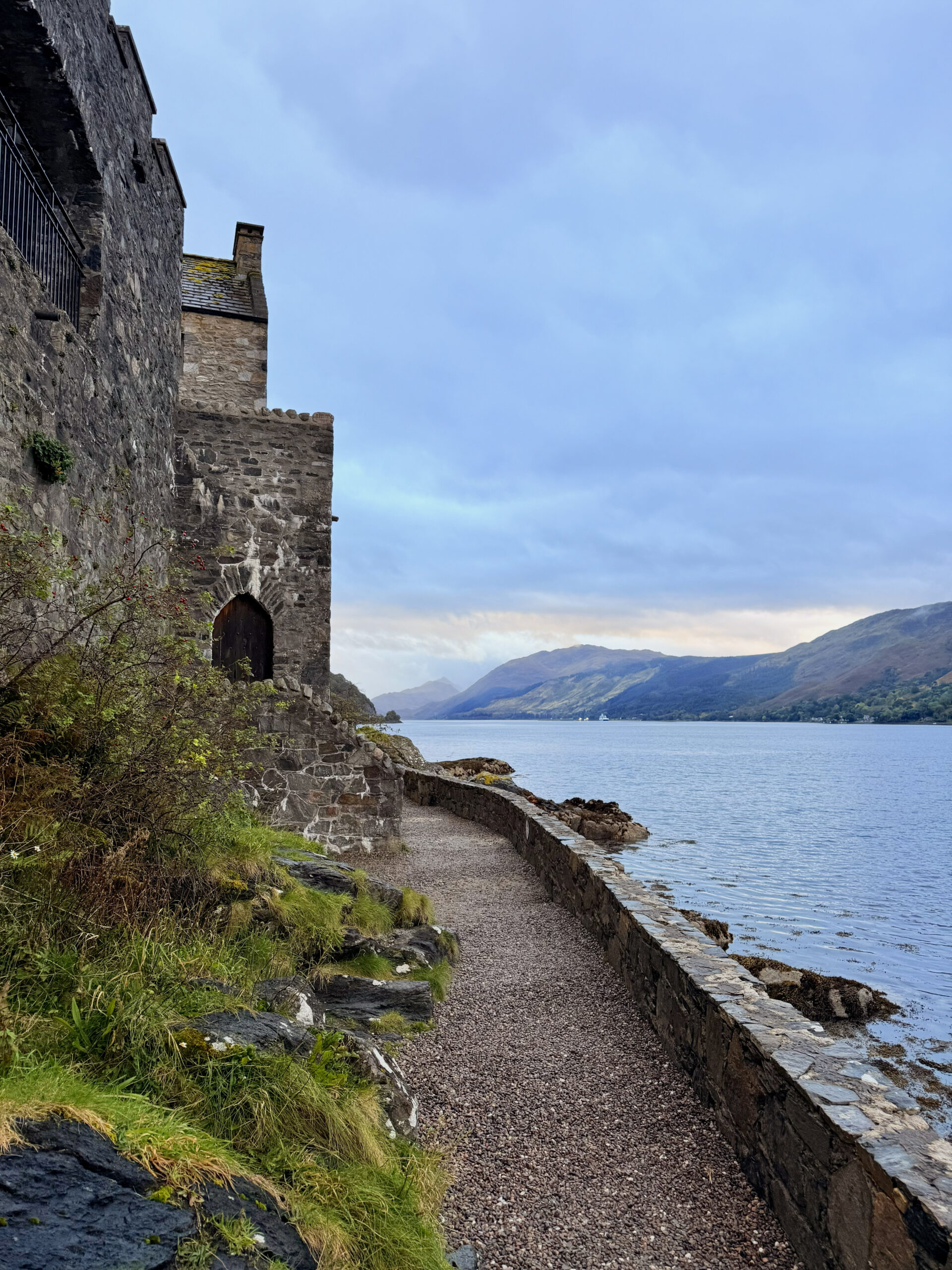 There it stood in the soft gray light where three lochs meet. A castle so timeless it looked like it might be dreaming. Stone dark with history, wrapped in cloud, framed by still water and drifting rain. We saw it early. And we saw it right. No crowds. Just us, the weather, and one of Scotland’s most enduring sights.