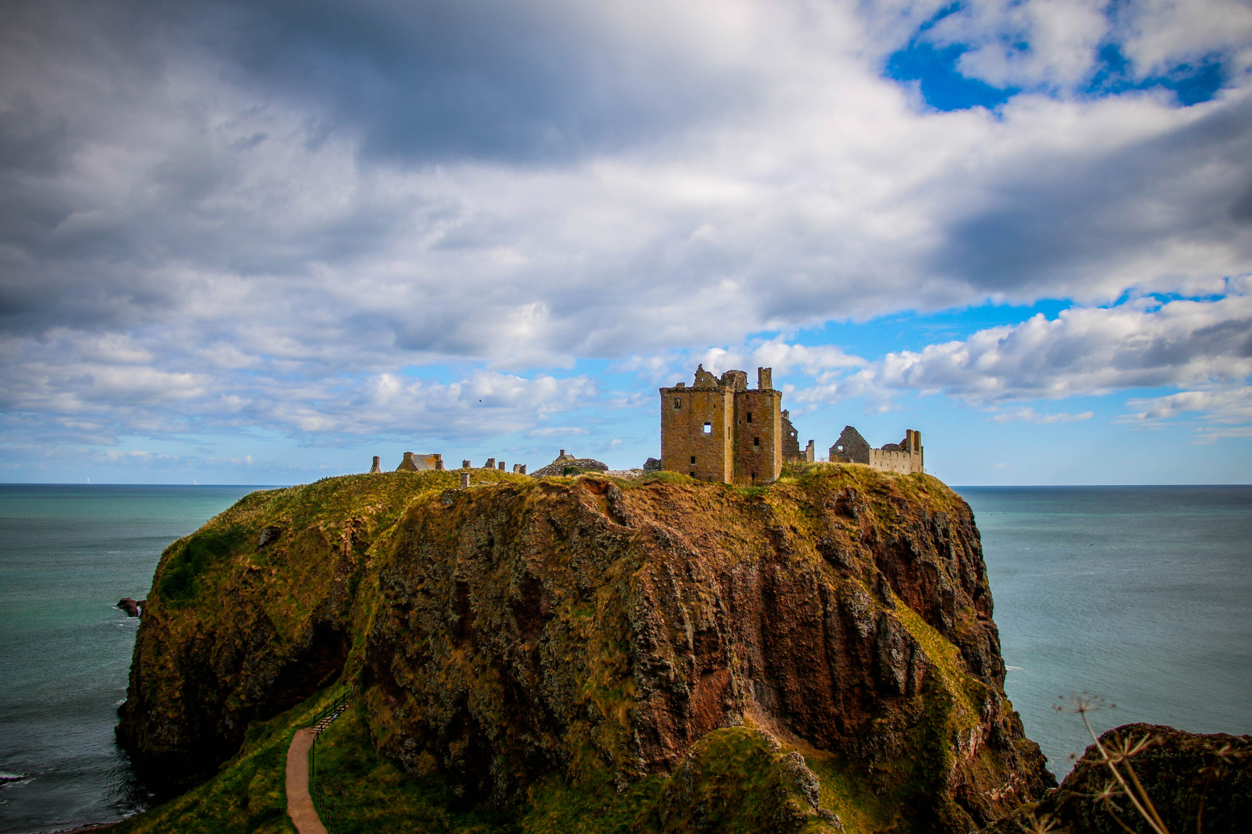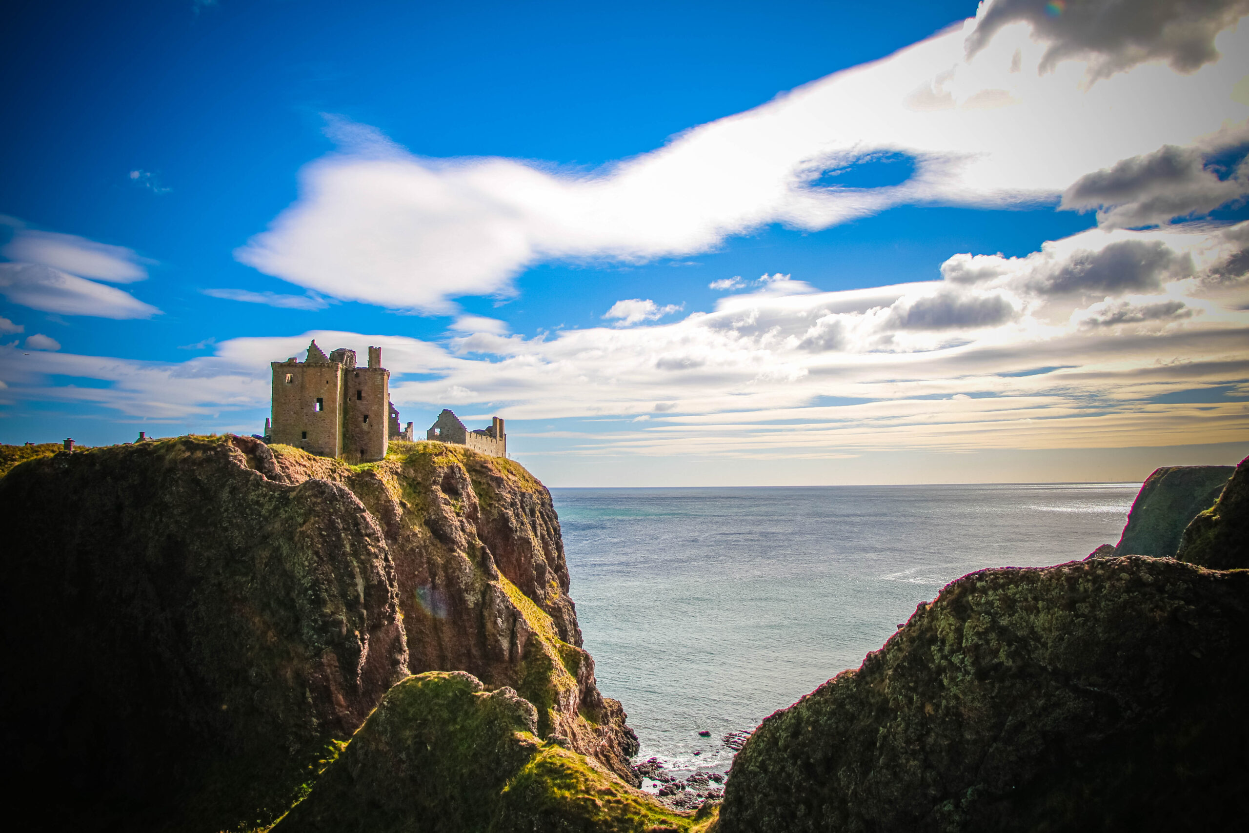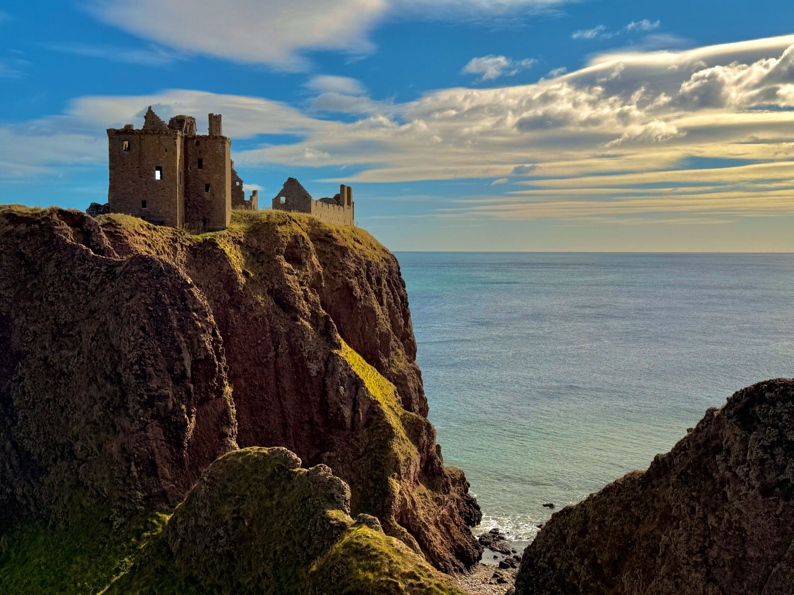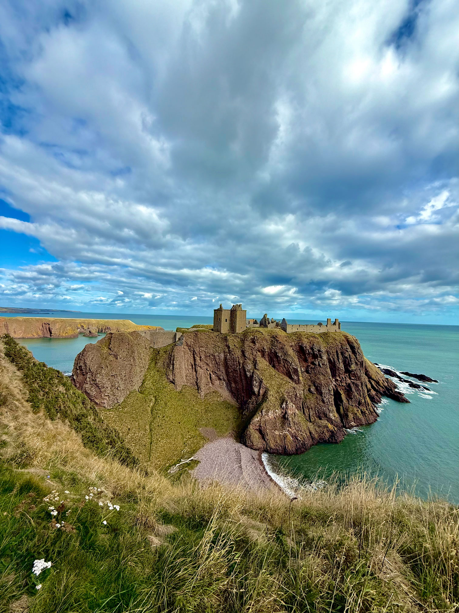 There’s no photo that prepares you for the first sight of Dunnottar. It rises from the cliffs like it’s grown straight out of the rock – wind-beaten, proud, and impossibly cinematic. The North Sea crashes below in deep blues and silvers, relentless… and alive.