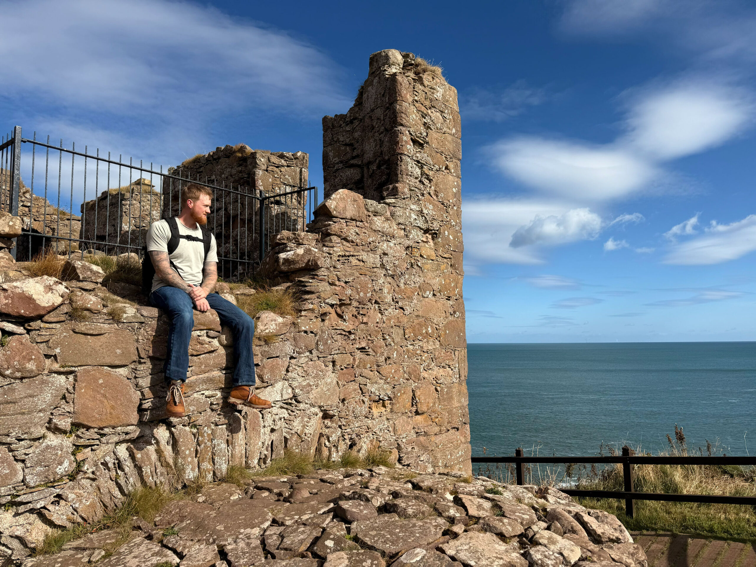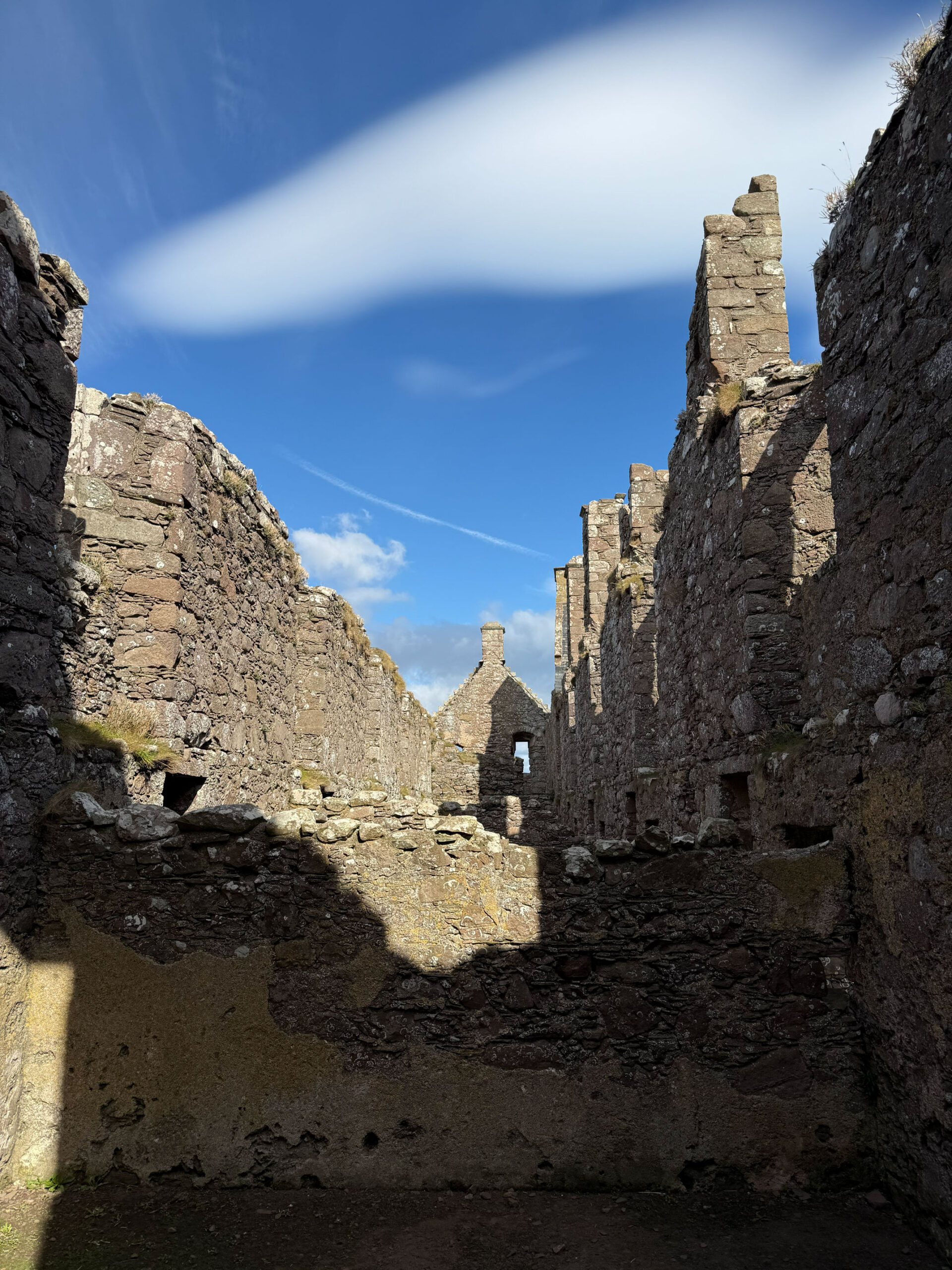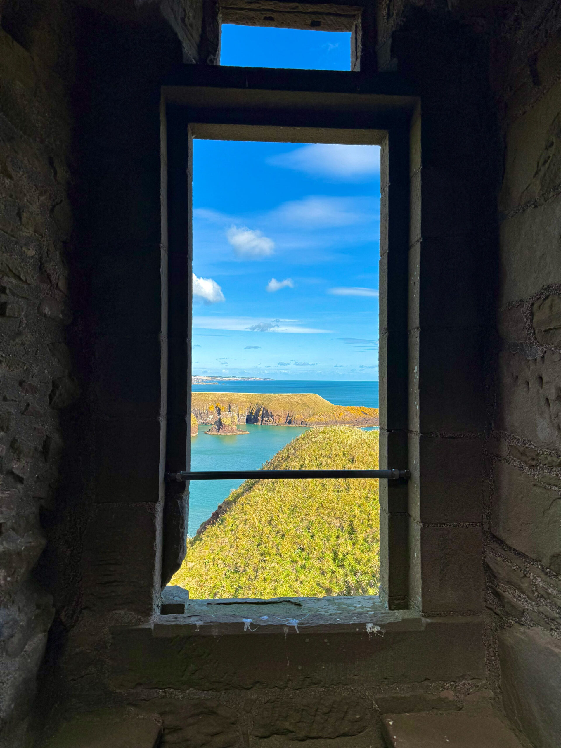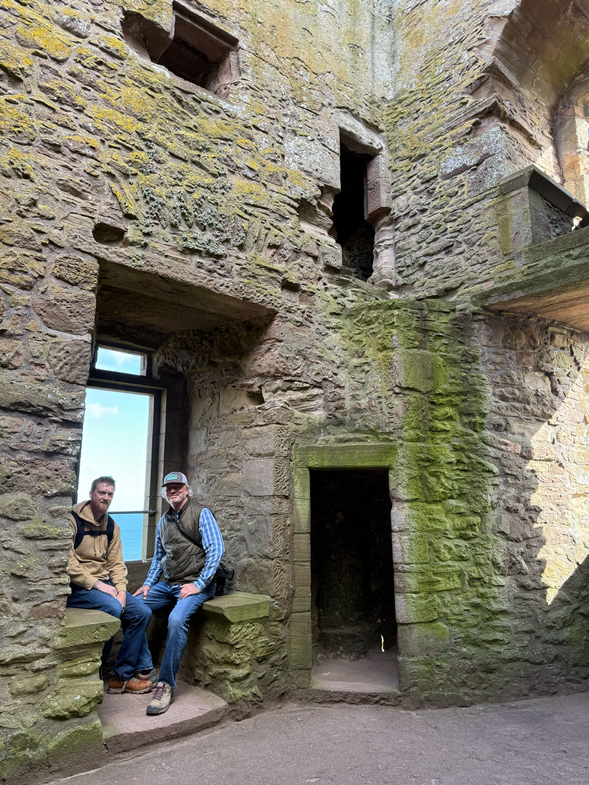 We wandered every inch of the ruins – narrow stairways, weathered archways, and moss-covered stone where the light spilled through broken windows. Somewhere beneath those cliffs, in 1297, William Wallace led his men to victory against English forces – a small but fierce moment in Scotland’s long, defiant history. Standing there, it’s easy to imagine the sound of waves carrying echoes of that past.