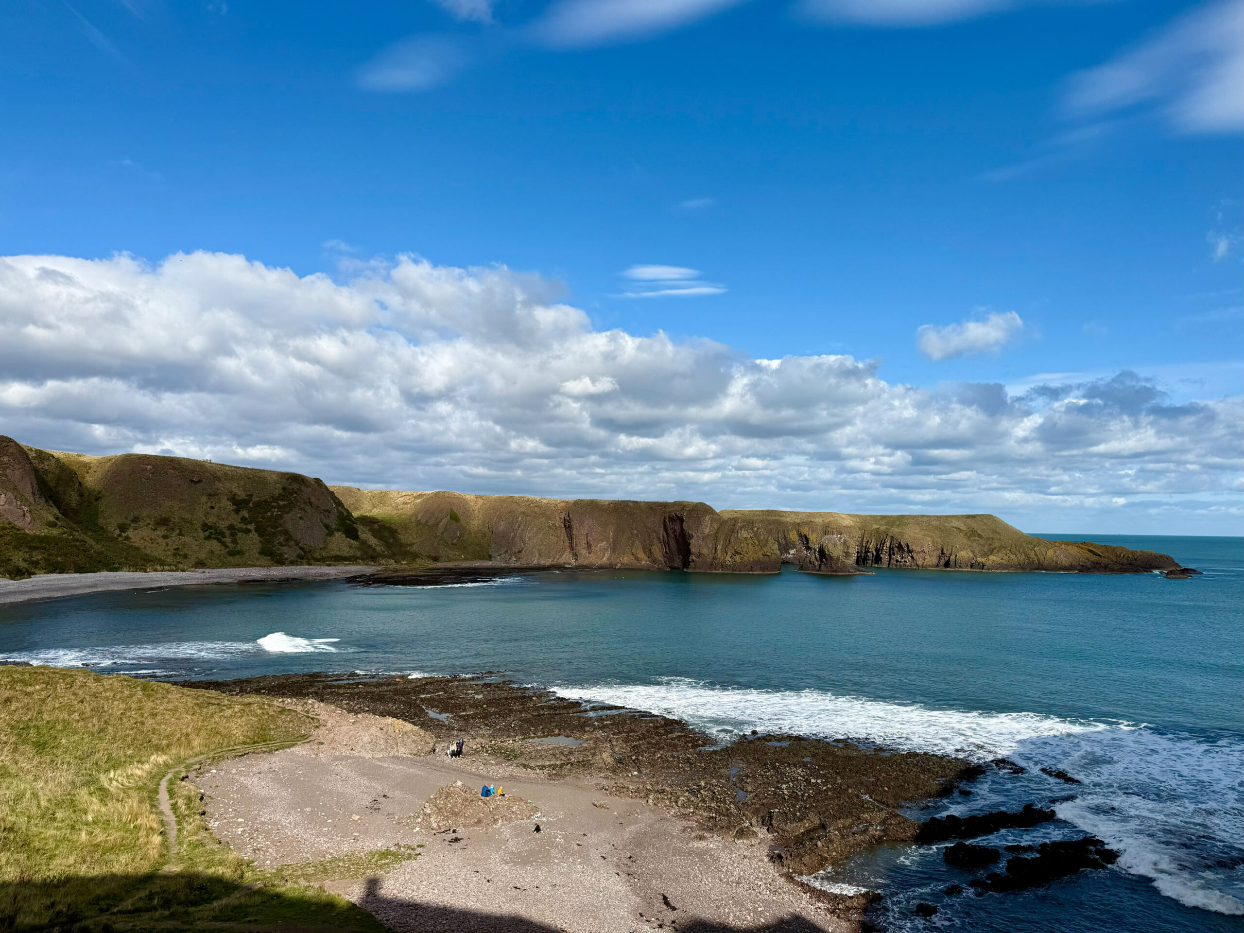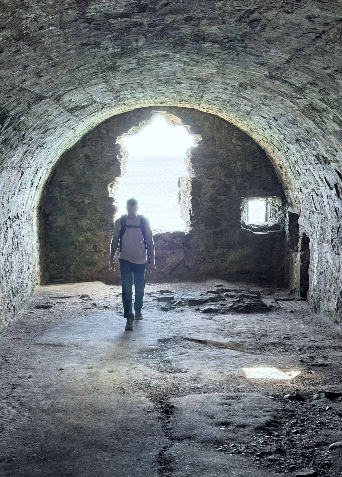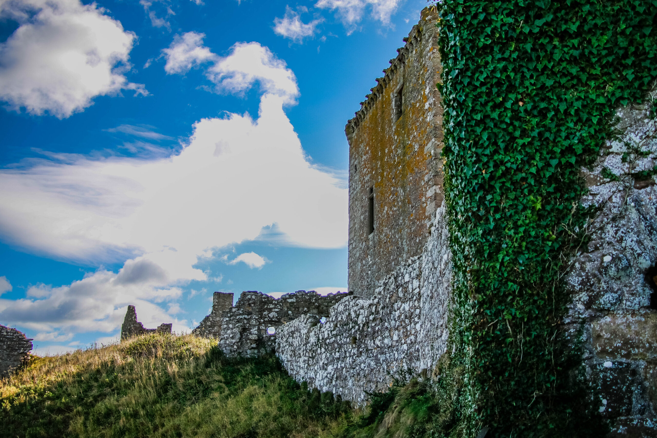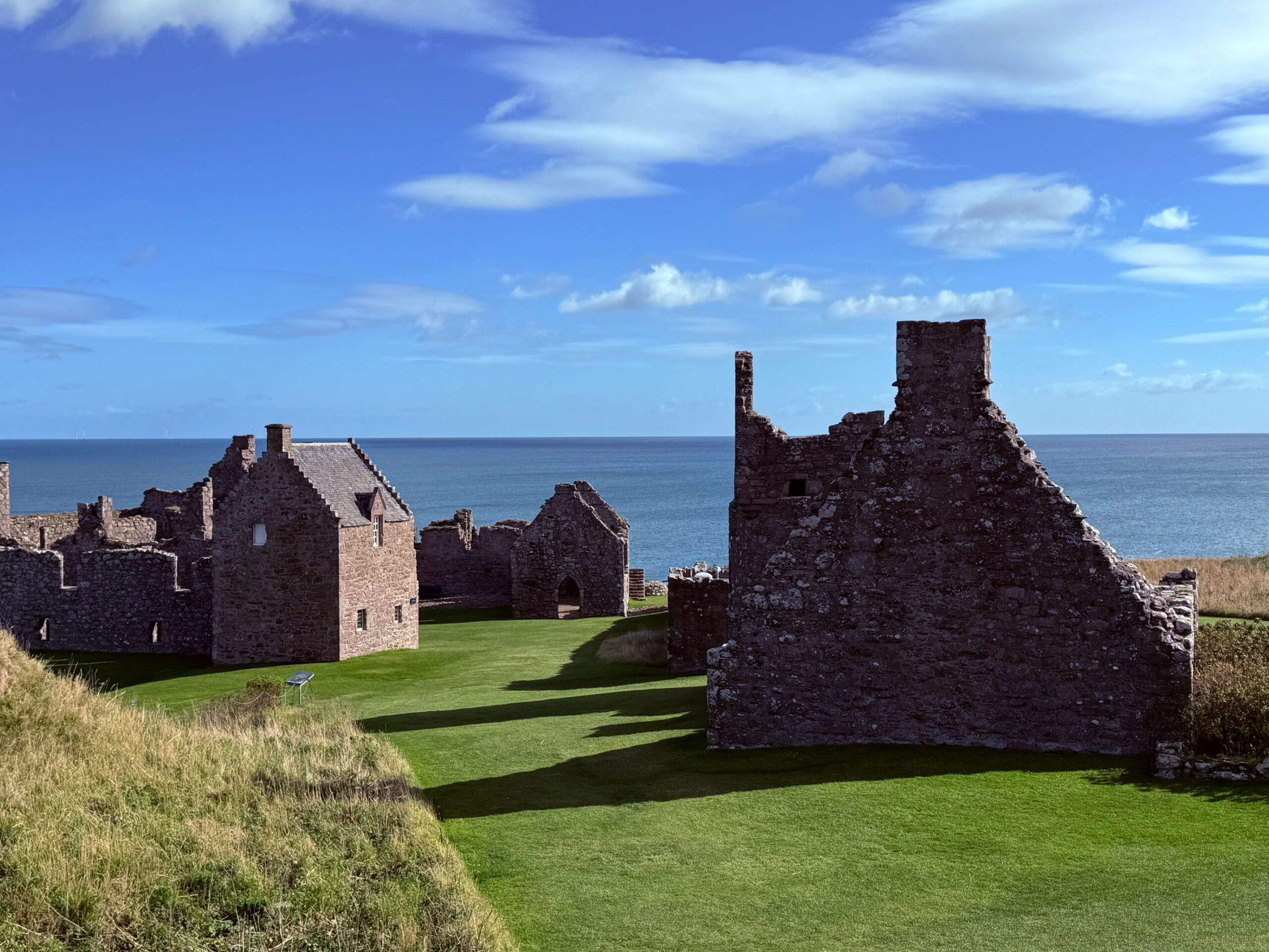 We wandered every inch of the ruins – narrow stairways, weathered archways, and moss-covered stone where the light spilled through broken windows. Somewhere beneath those cliffs, in 1297, William Wallace led his men to victory against English forces – a small but fierce moment in Scotland’s long, defiant history. Standing there, it’s easy to imagine the sound of waves carrying echoes of that past.