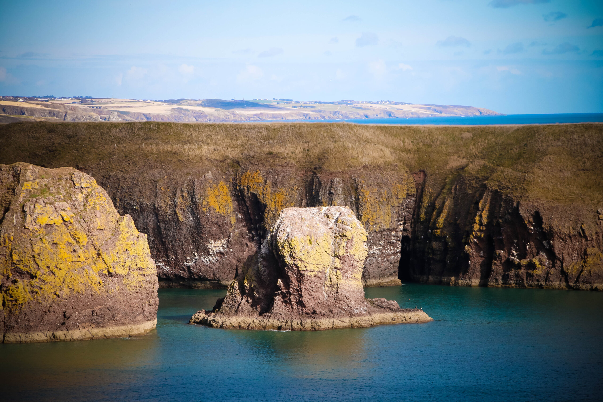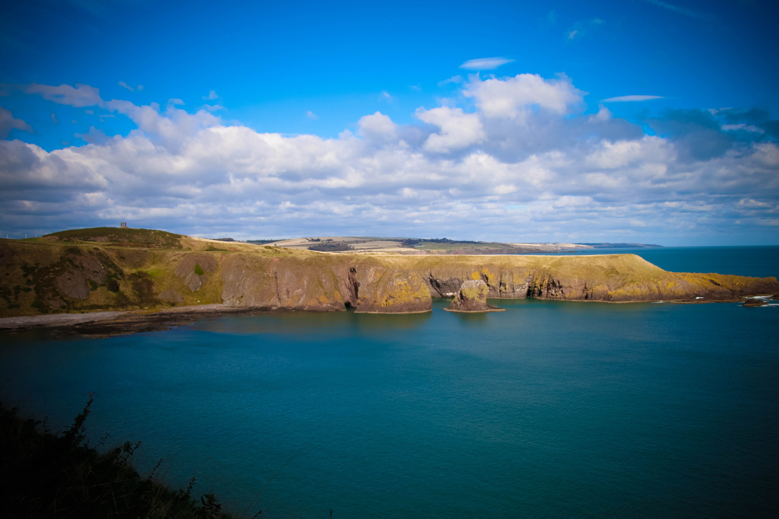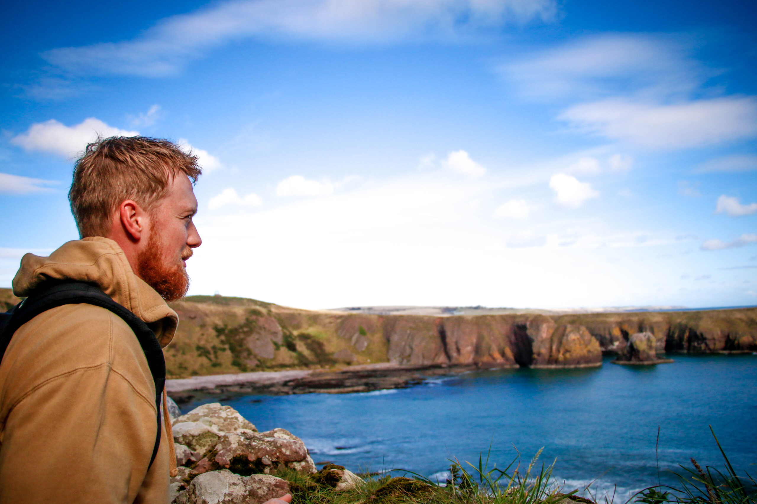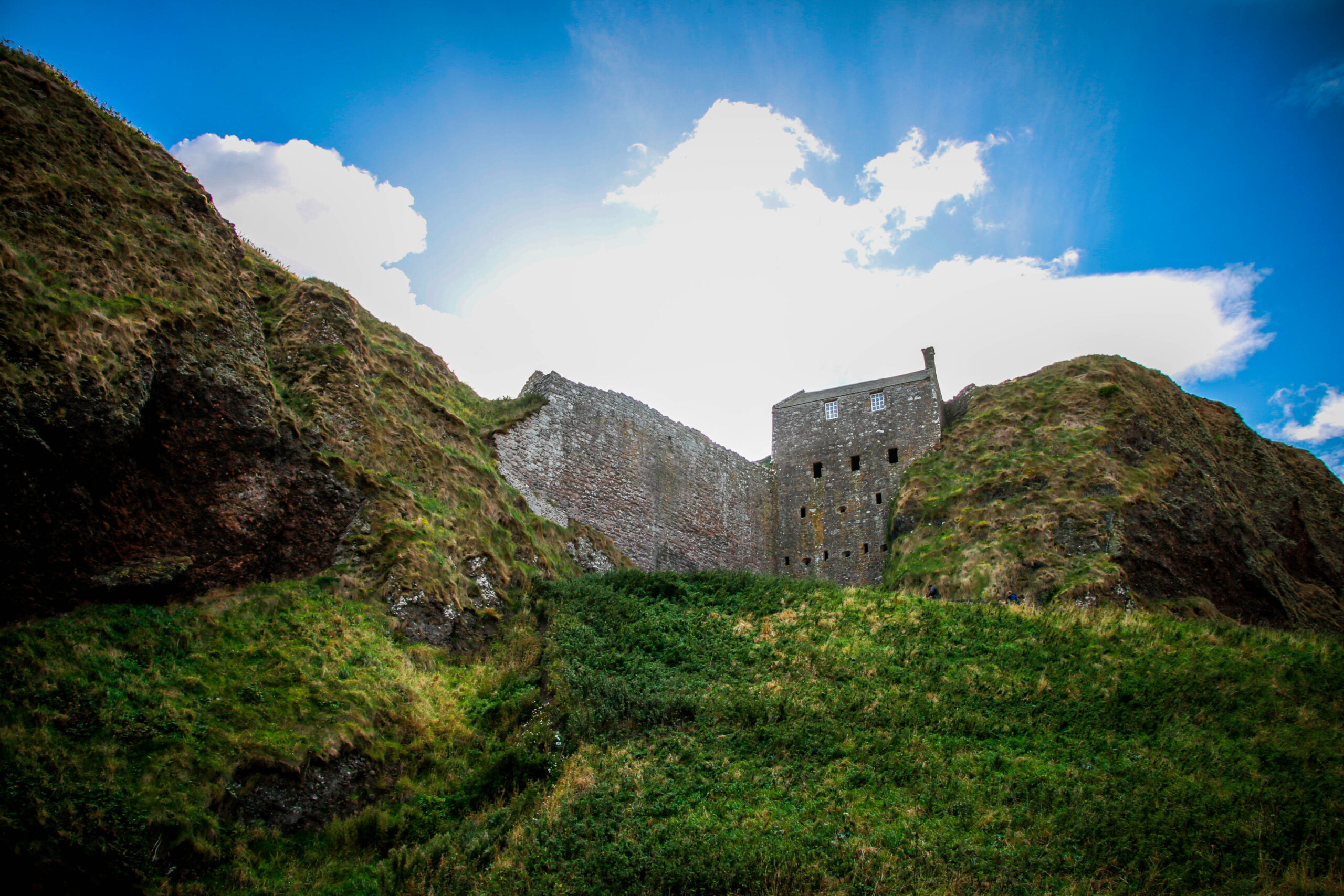 We wandered every inch of the ruins – narrow stairways, weathered archways, and moss-covered stone where the light spilled through broken windows. Somewhere beneath those cliffs, in 1297, William Wallace led his men to victory against English forces – a small but fierce moment in Scotland’s long, defiant history. Standing there, it’s easy to imagine the sound of waves carrying echoes of that past.