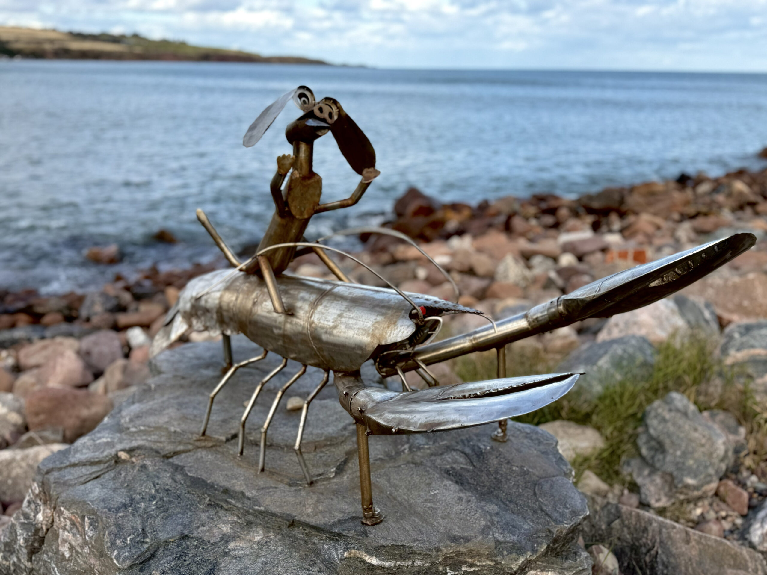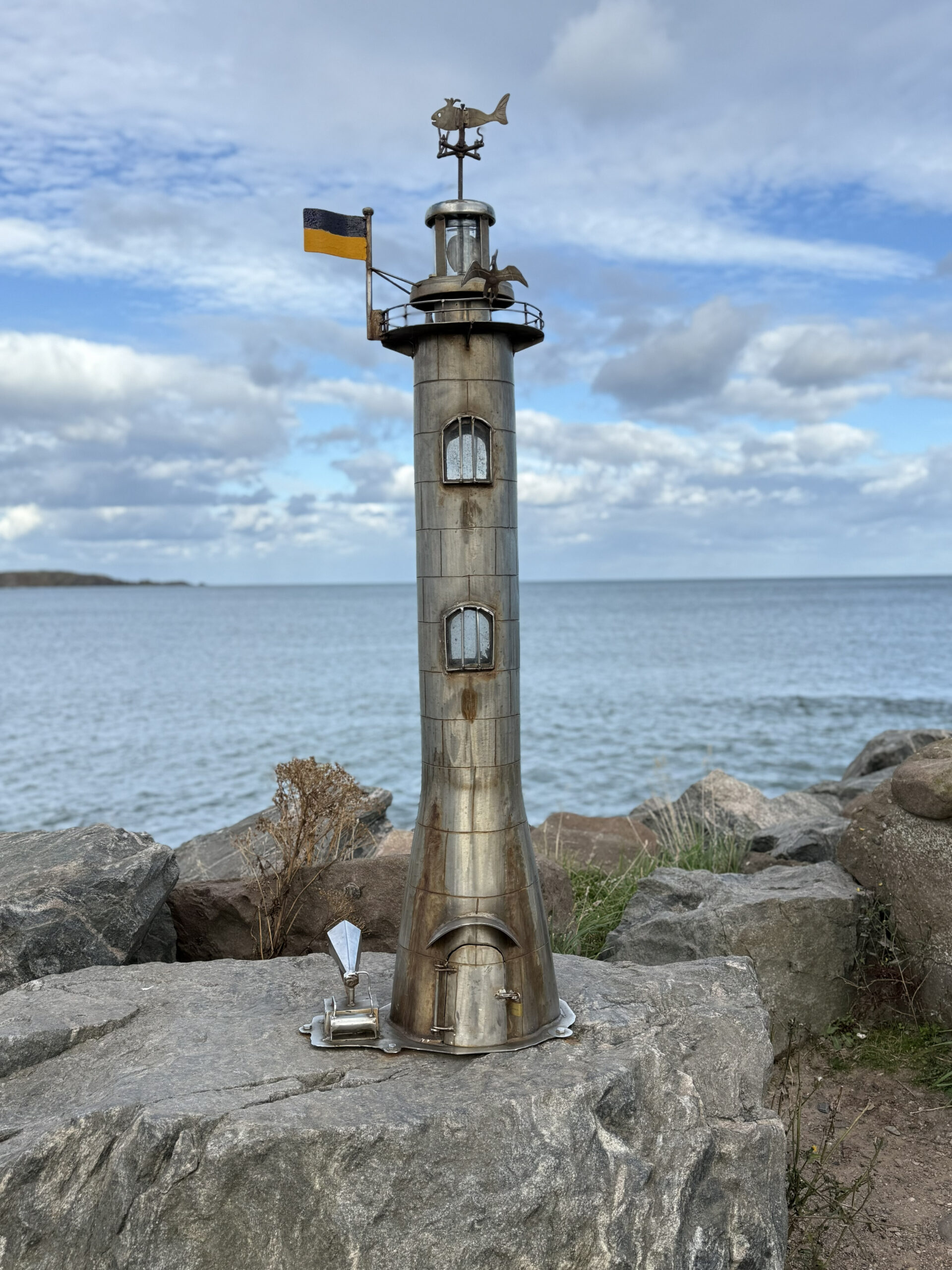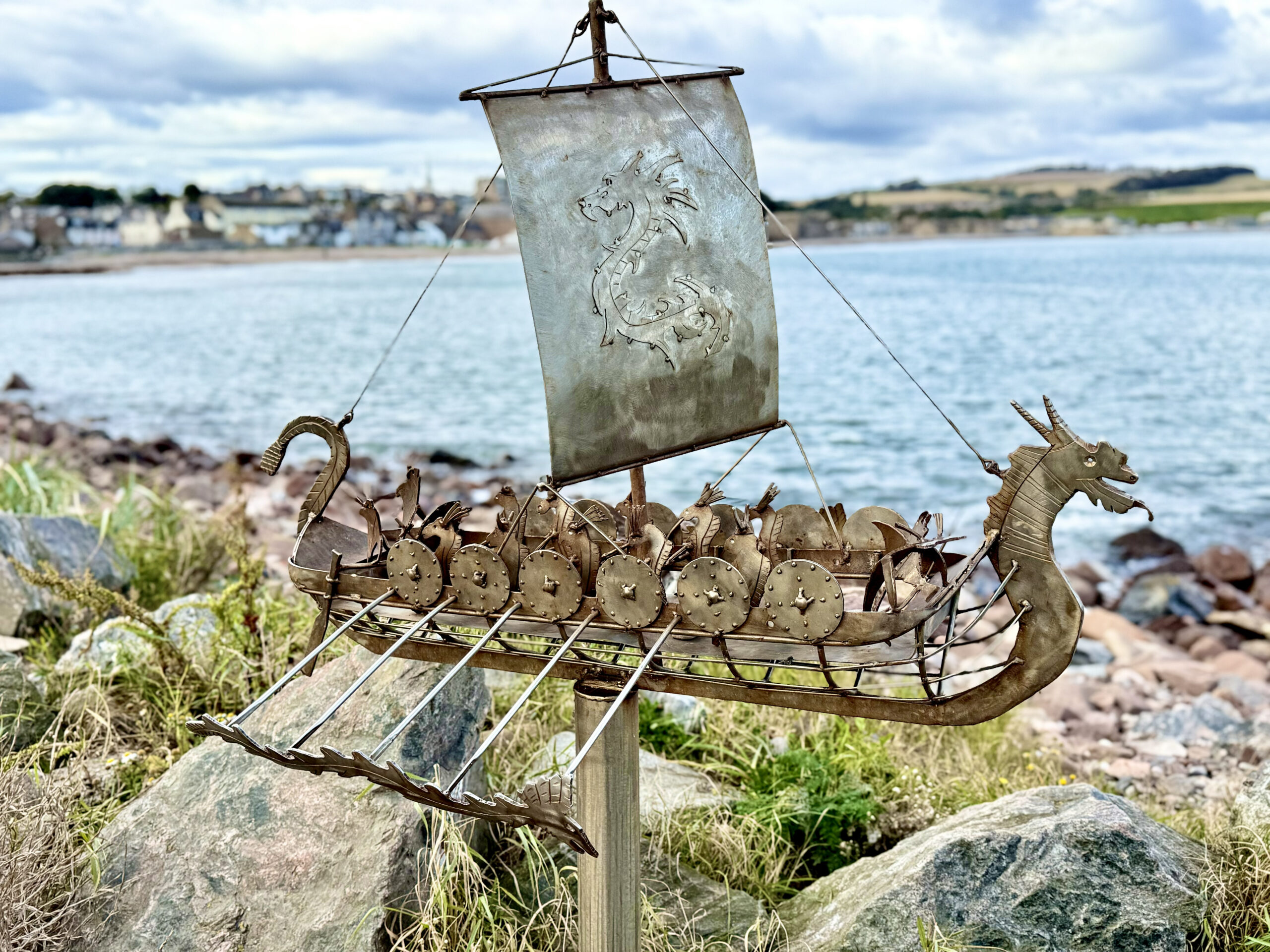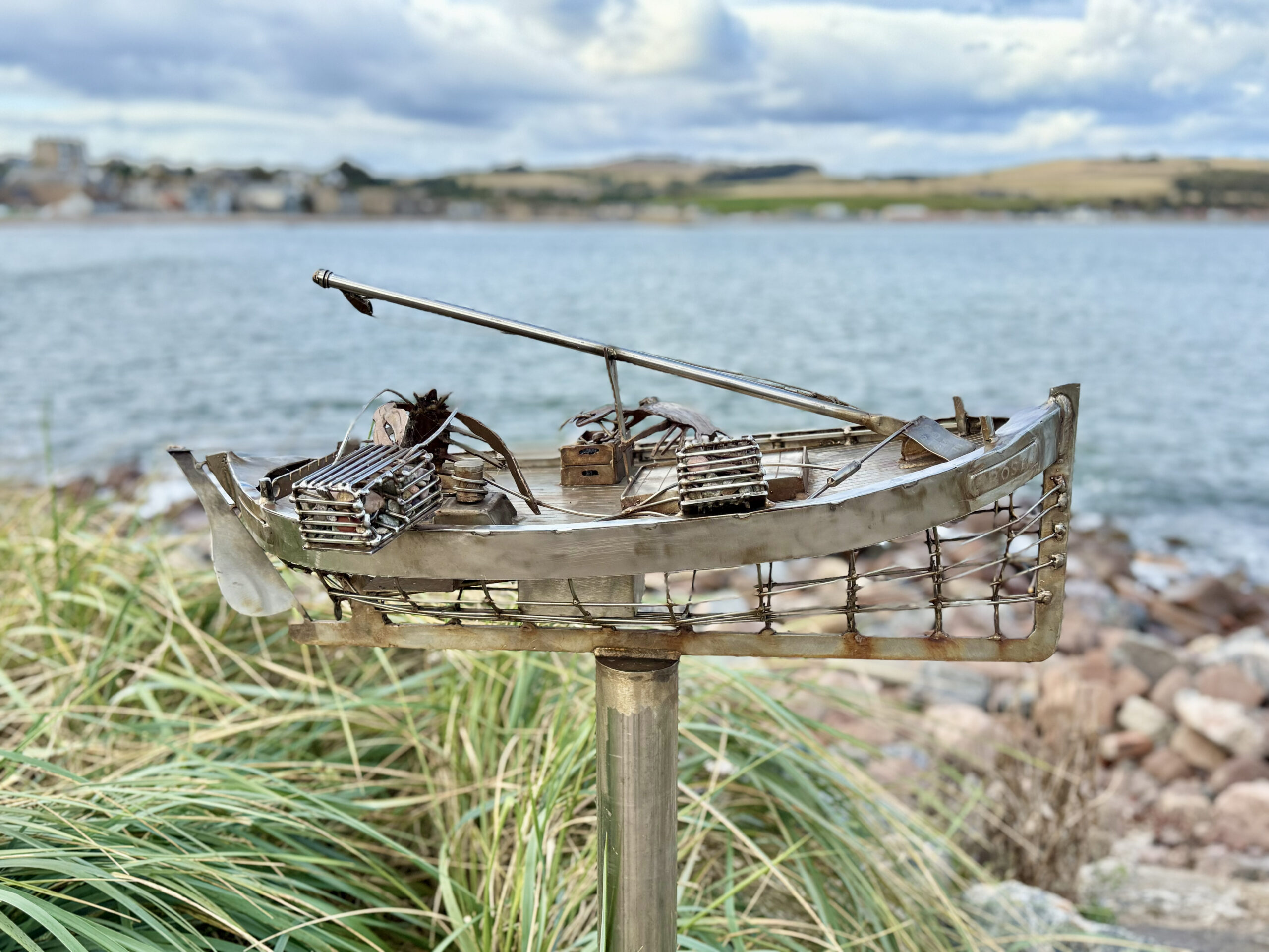 We walked the harbor walls, where bright boats rested in calm water, their reflections shifting with the sky. Along the shoreline stood a series of metal sculptures – intricate models of old boats, fishing vessels and more, that once sailed the North Sea right there. Each one named, each one honored, their stories welded into steel so they’d never drift too far from home.