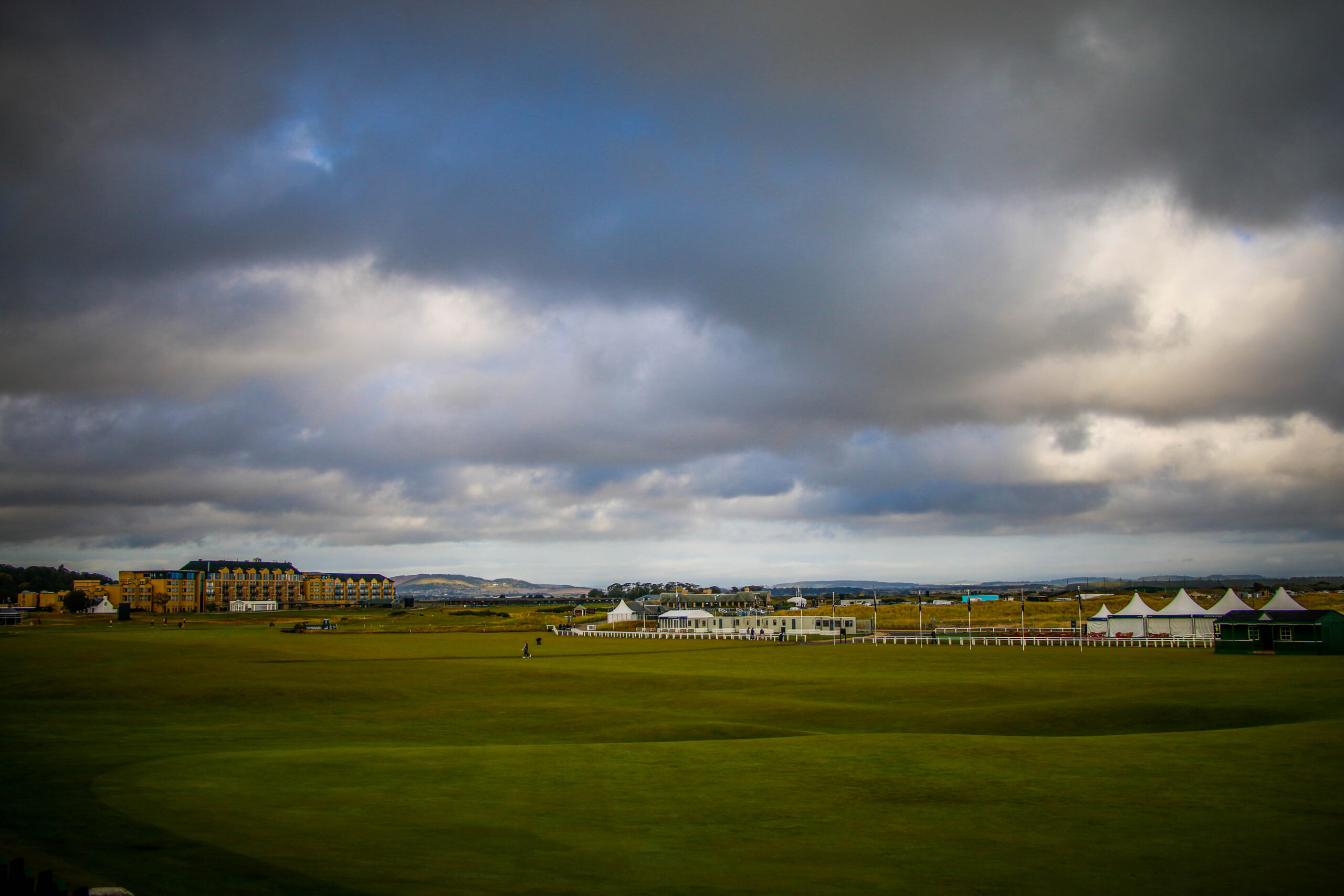 The first stop was the Old Course. Even before stepping onto the grass, there’s a stillness to it – like the air knows where you are. The grandstands for the Alfred Dunhill Links were going up, banners fluttering, workers moving methodically, but the land itself felt ancient and unbothered. You could almost hear the ghosts of swings long past – Old Tom, Jack, Tiger – all echoing somewhere between the dunes and the wind. I couldn’t help but think of my dad – good old Wally – who loved this game like few others. I watched more Sunday golf with him in his final three or four months than maybe the rest of my life put together. He would have got a kick out of seeing this place.