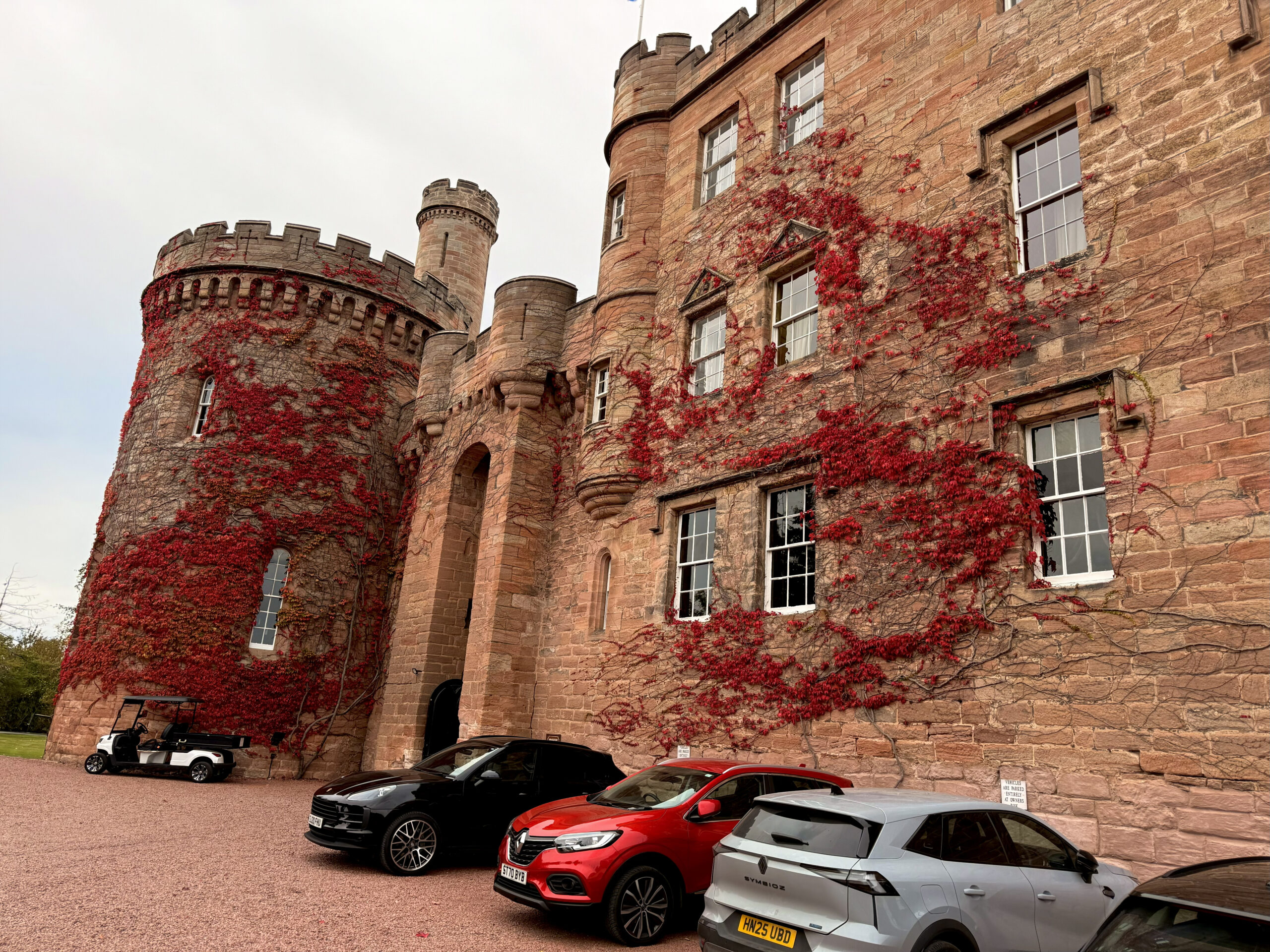 The road carried us into Midlothian, where the woods grow darker and history feels closer – less displayed, more felt. We spent the night at Dalhousie Castle, a 13th-century stronghold steeped in stories. Tradition says William Wallace passed through its gates. Mary Queen of Scots once walked its halls. And the ghosts? Legend insists they never quite left – according to the lore… and a few knowing smiles from the staff.