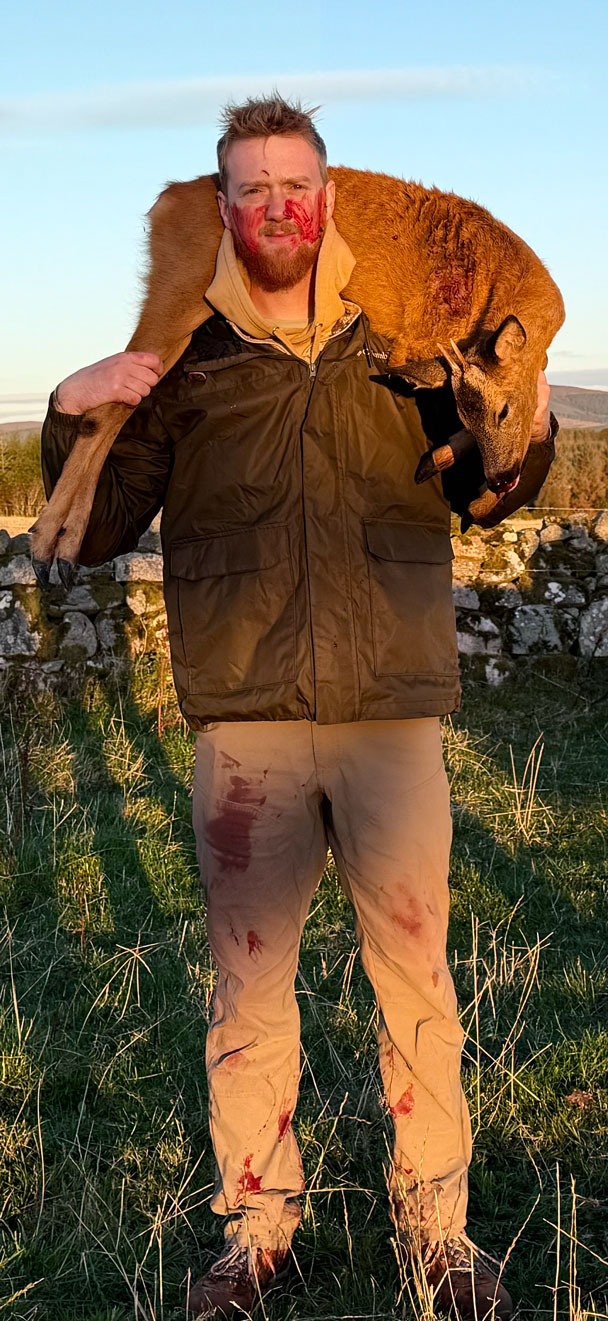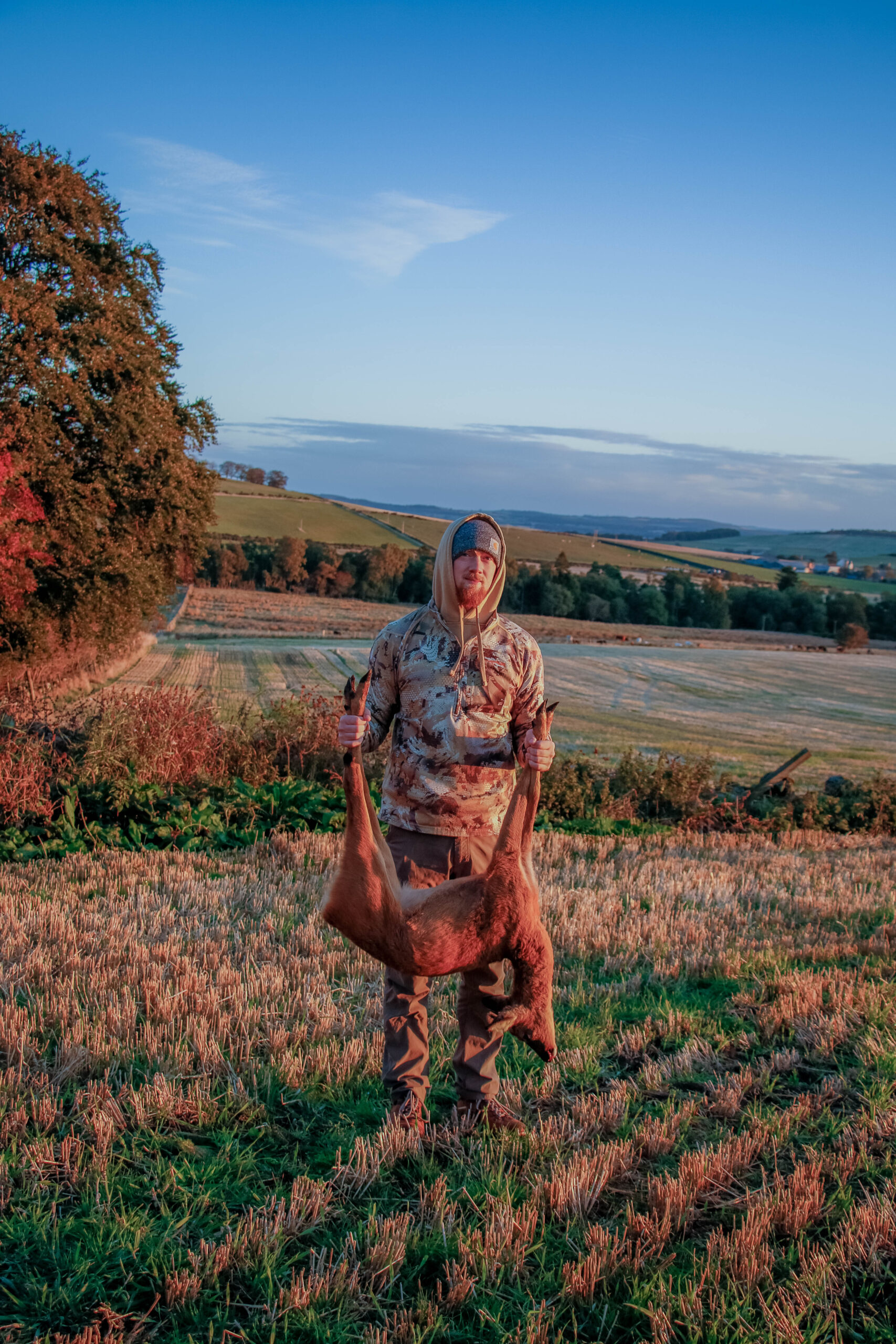 By dawn the next morning, we were in the field. The light came slow and golden across the barley stubble – that kind of Scottish morning that makes everything feel still. Ashton led the way; this was his moment. It did not take long to start seeing Roe deer, and we were on a small buck soon into our hunt. A perfect stalk, a clean shot, and that proud silence that comes afterward. A first for Ashton. And quite a moment for a father.